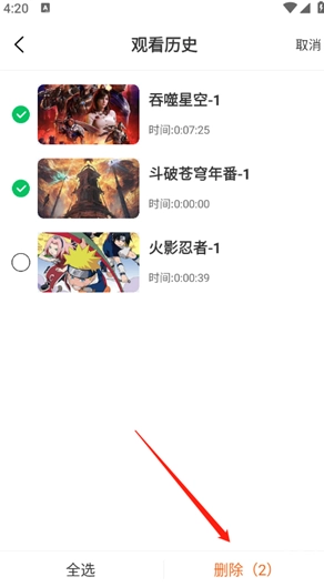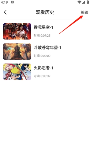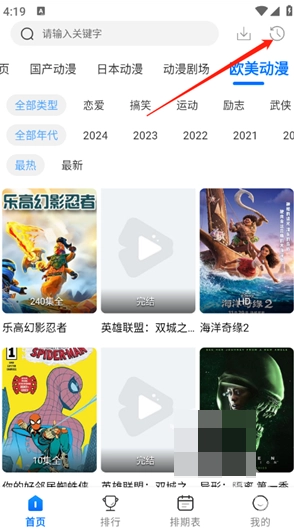1、打开吾爱动漫,在首页点击右上方历史记录图标。