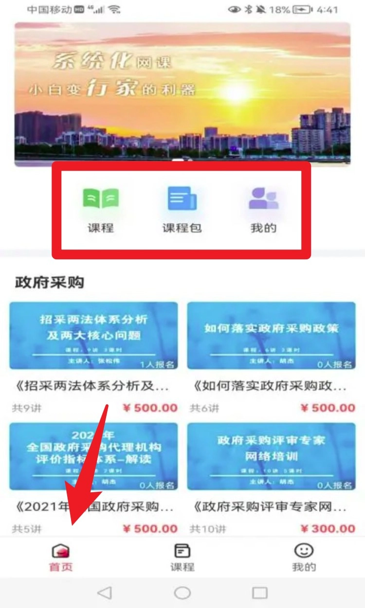 1. 打开App后,点击首页底部的课程图标,就能进入全部课程的分类页面,进行浏览和选择。