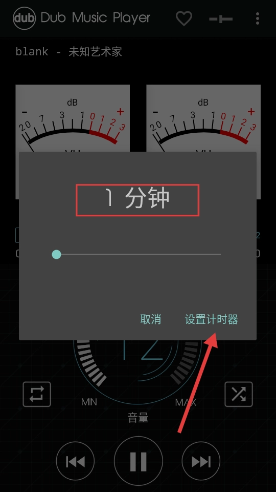 4、进入睡眠定时设置界面后,先把时间调整到需要的数值,再点击【设置计时器】按钮,这样就能开启睡眠定时功能了。