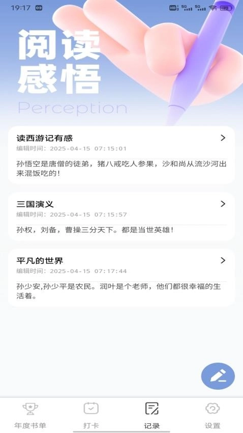 3、接着就能记录下自己的阅读感悟,轻松留存阅读时的所思所感。