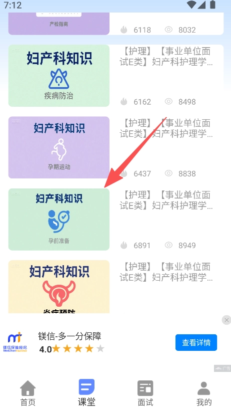 1、进入课堂,选择儿科或妇产科等护理知识板块。