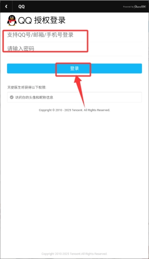 4、输入QQ账号与密码后点击登录,就能完成验证并使用健康管理功能。