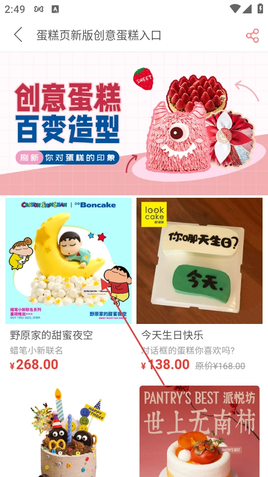 2、在蛋糕分类页面里,点击【创意网红】这个选项,就能进入创意蛋糕页面。
