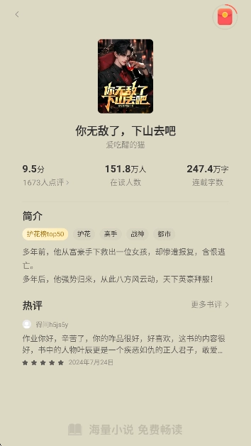 4、挑选一本自己感兴趣的小说,像《你无敌了,下山去吧》就可以。