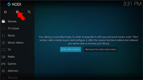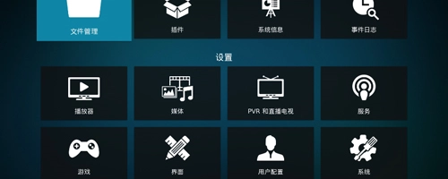 1、首先在本站下载并安装Kodi播放器,打开应用进入程序主界面后,点击上方的设置按钮