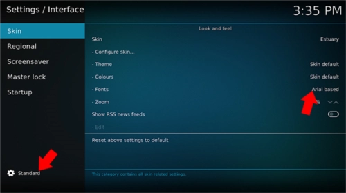 3、进入下方界面后,我们首先要把Skin选项下的Fonts选项调整为Aira based(要是没找到Fonts选项,就先将左下角切换成Standard)