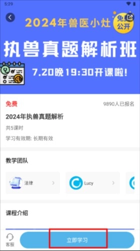 下滑页面即可查看课程的大纲介绍,点击报名按钮后会显示“立即学习”选项。