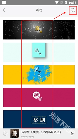 2、要是你有自己想听的戏,能直接搜索查找;要是没有,也可以选择下方你喜欢的戏种进去挑选。
