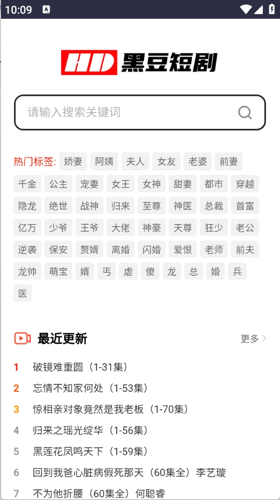 黑豆短剧是一个汇聚各类免费短剧资源的平台,平台设置了多样化的搜索标签,方便用户精准查找内容。首页展示着近期更新的短剧,题材涵盖爱情、都市、总裁等多种类型,能充分满足不同用户的观看需求。平台提供的短剧集数完整,还支持直接跳转至网盘观看,让用户随时都能轻松找到并观看自己喜欢的短剧内容。