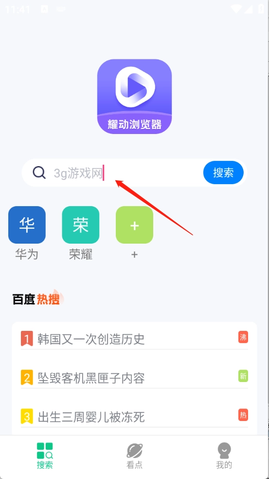 进入首页后,在搜索框内输入关键词或网址并点击搜索按钮。