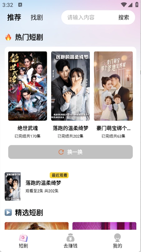 2、进入“短剧”页面后,推荐页面会向用户展示当下热门的短剧内容。