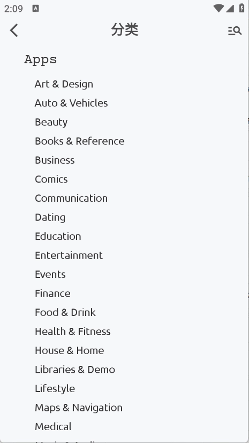 4、分类页面可以按照首字母将软件进行了归类。