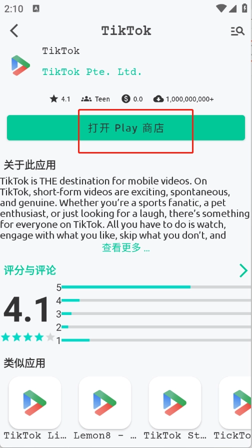 5、当用户点开所需的软件资源后,点击打开Play商店。