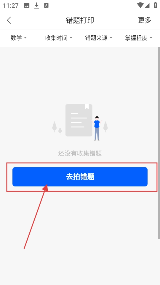 3、进入数学错题页面后,若尚未收集错题,点击【去拍错题】按钮,即可进入拍照收集错题的界面。