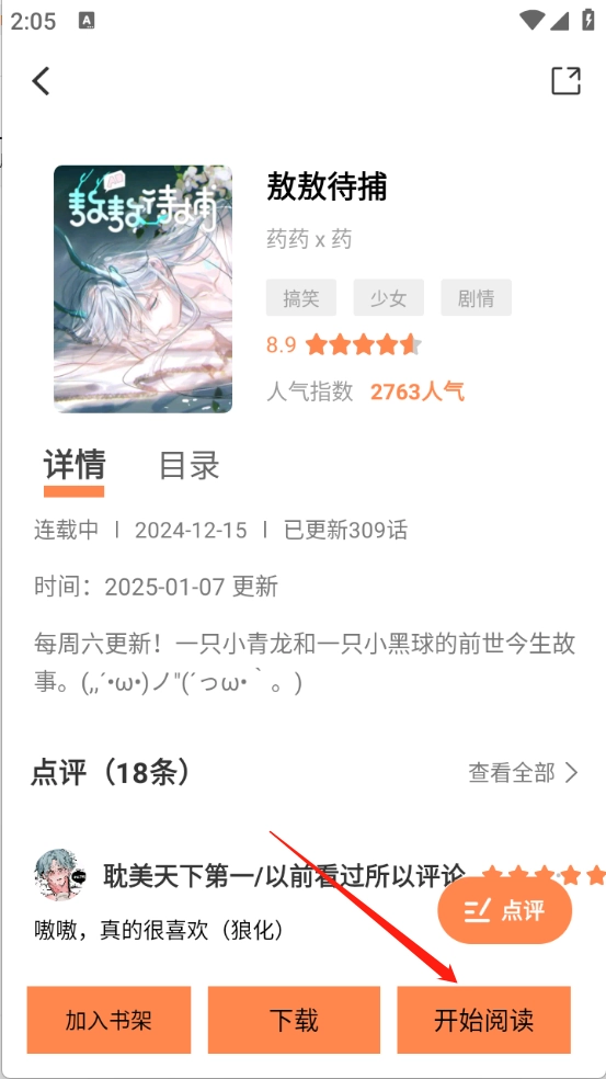5、用户找到所需的漫画资源并点开后,点击“开始阅读”按钮即可。