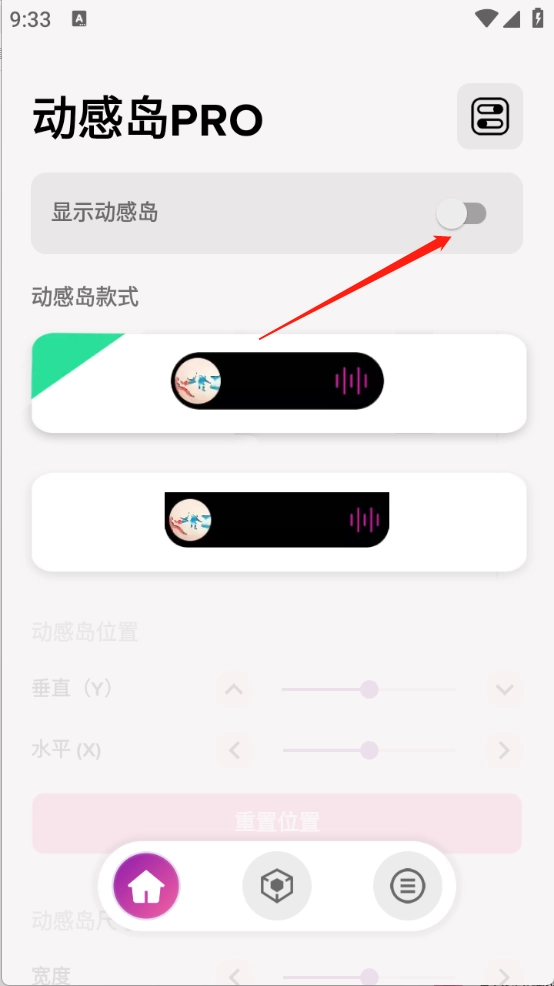 2、点击“显示动感岛”。