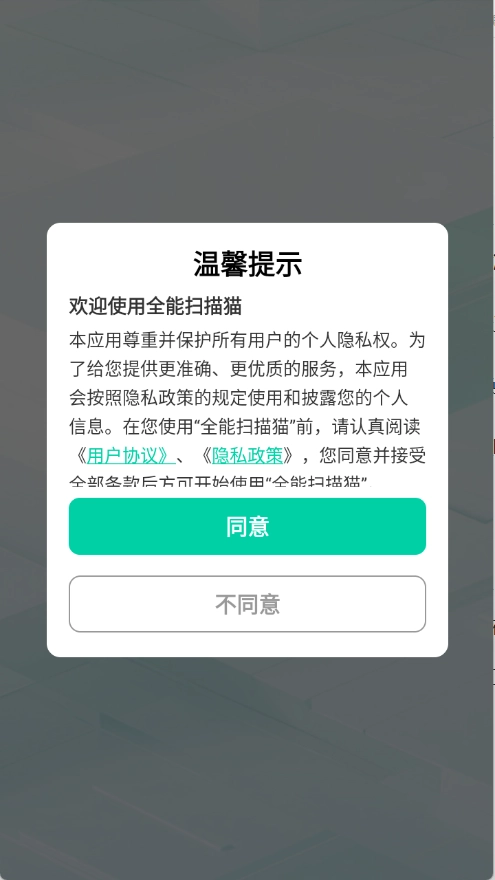 1、用户首先需在本站的全能扫描猫中,查看并同意隐私政策与用户协议。