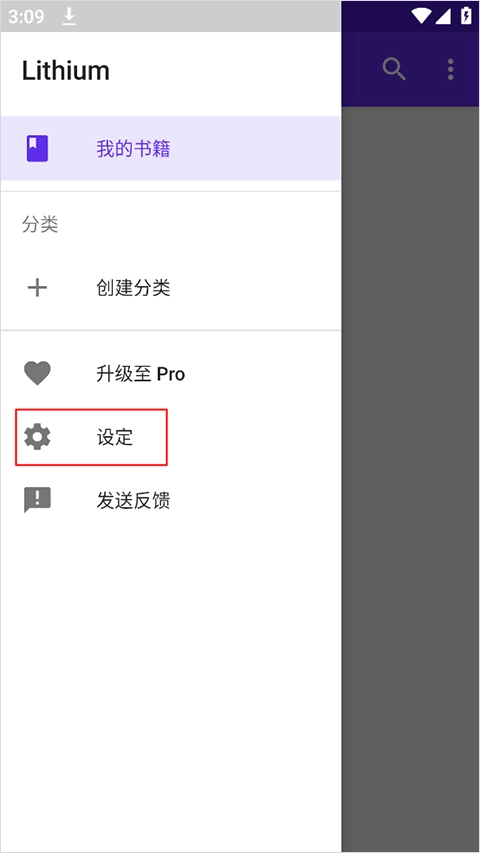 1、启动Lithium阅读器,进入主界面后,点击左上角的三点图标。