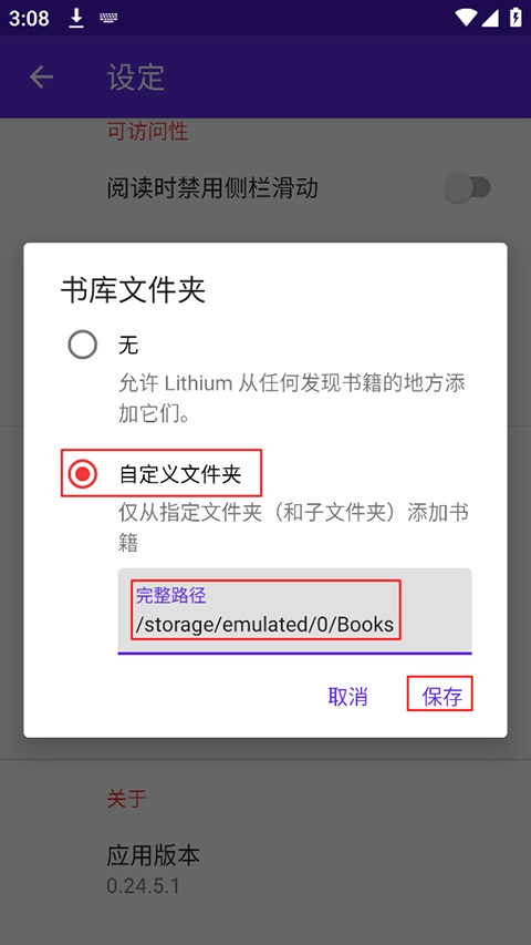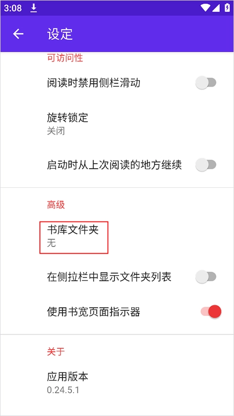 3、在设定页面点击"书库文件夹"。