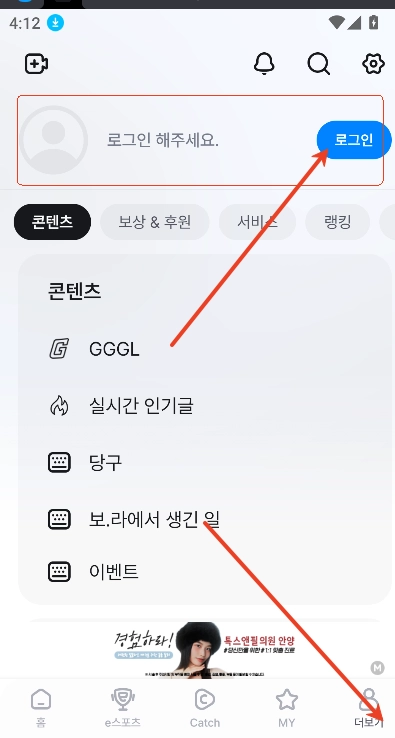1、请先确认已安装最新版本的afreecatv应用,接着进入“我的”页面,找到并点击“注册/登录”选项,以此启动账号创建的流程。