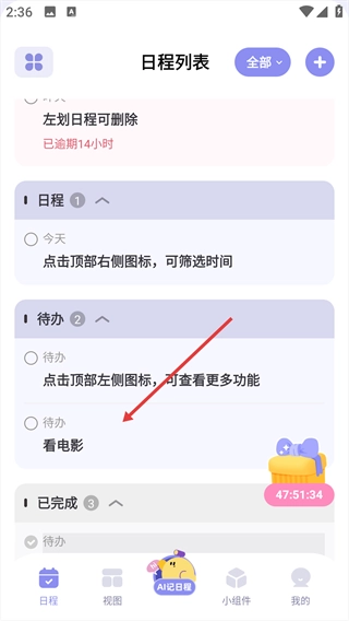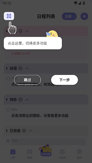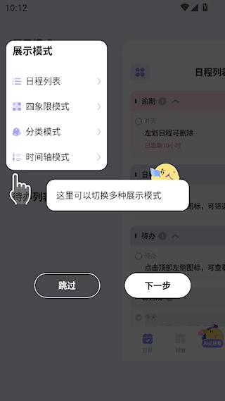 4、时间轴模式:展示全部日程安排,使时间规划清晰直观。