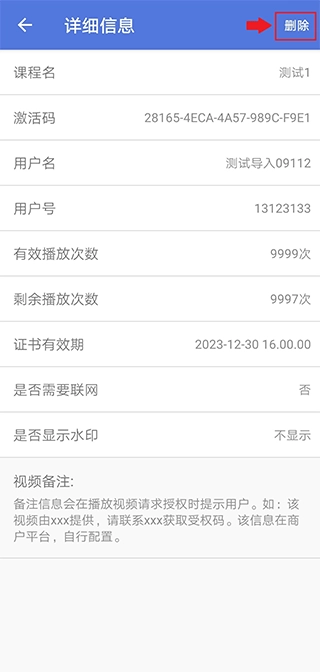 4、确定后删除该视频的激活码。