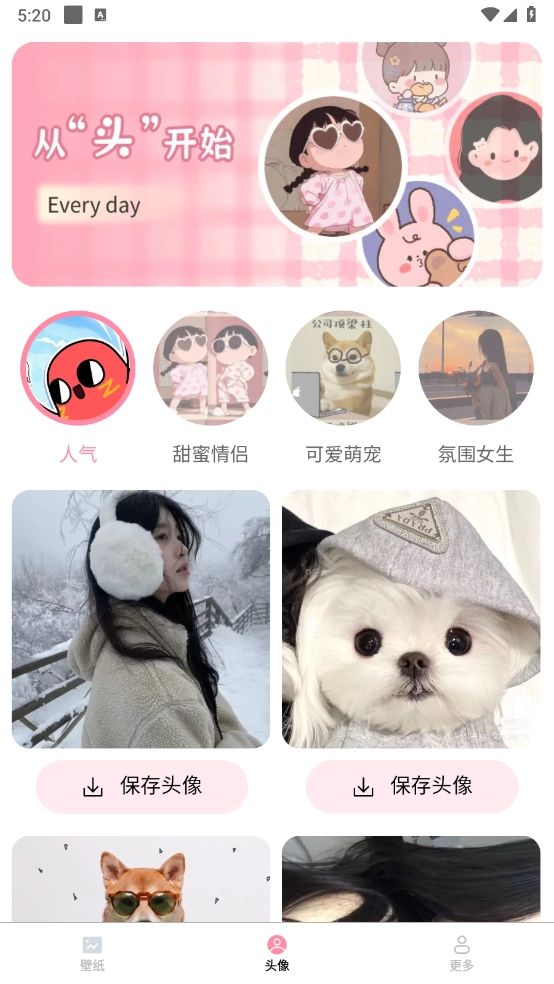 2、壁纸和头像的种类十分丰富,能让你的手机桌面每天都有新鲜感。