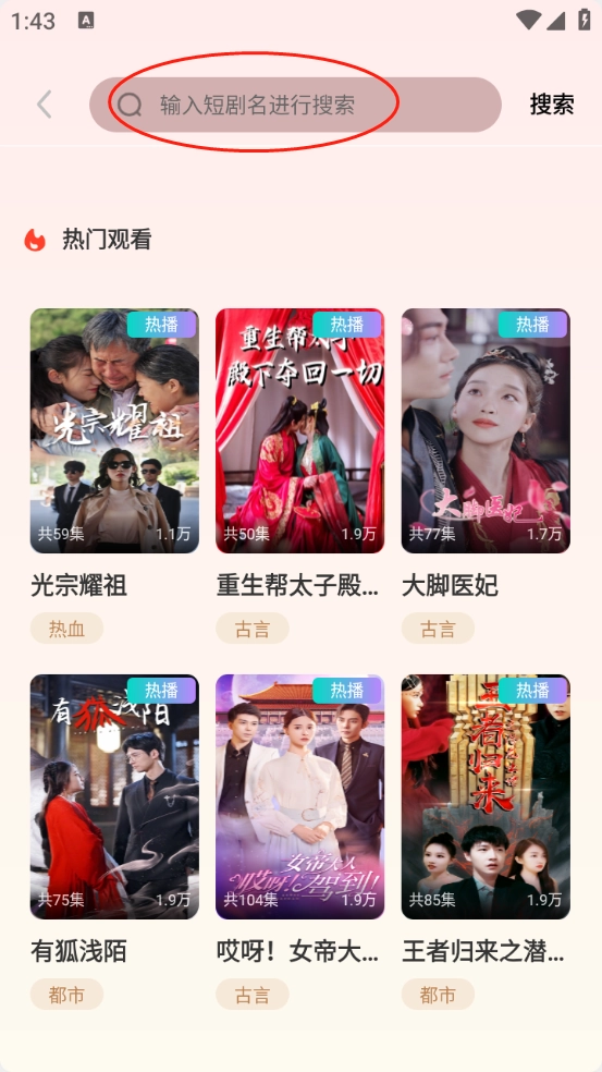3、大家可以通过输入短剧名进行搜索。