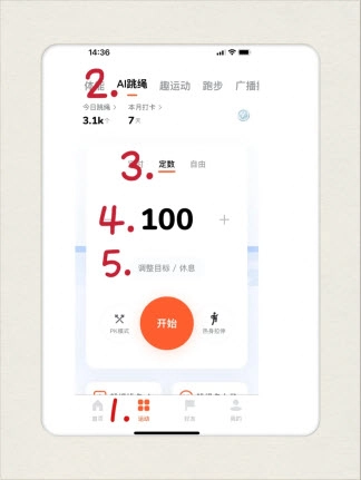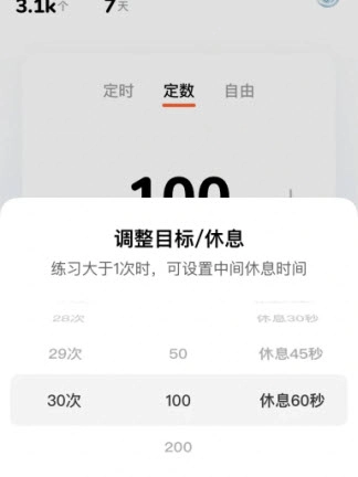 5、先确定自己要完成多少组跳绳,以我为例,我设定的目标是30组,每组跳100次,组间休息60秒。