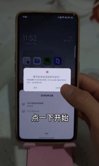 1、使用OPPO手机时,从屏幕顶部向下滑动调出下拉菜单,找到“投屏”选项并将其开启。