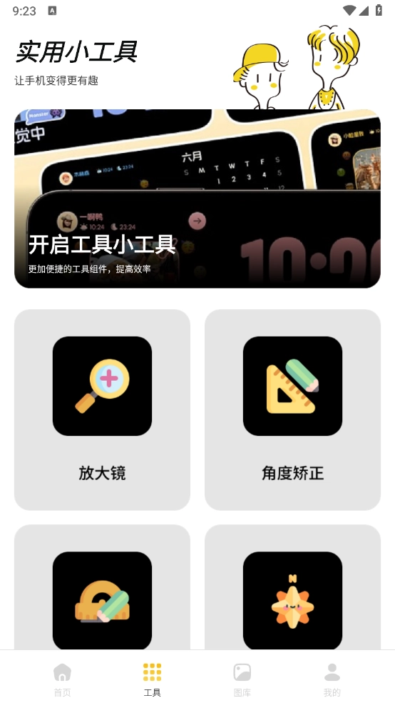 3、“工具”栏目里汇聚了大量手机工具,像放大镜、尺子和指南针之类的都包含在内。