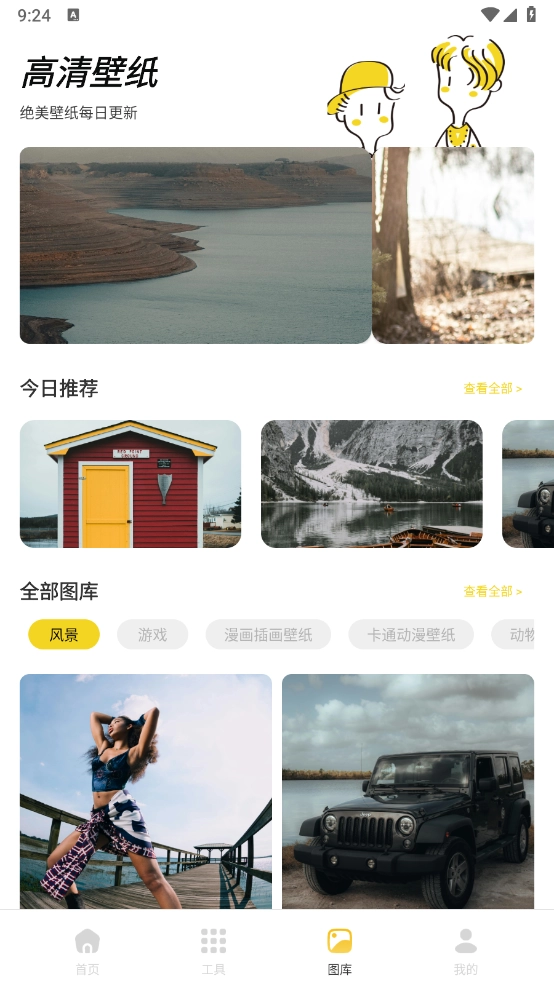 在“图库”页面,您可以免费获取丰富多样的壁纸资源。