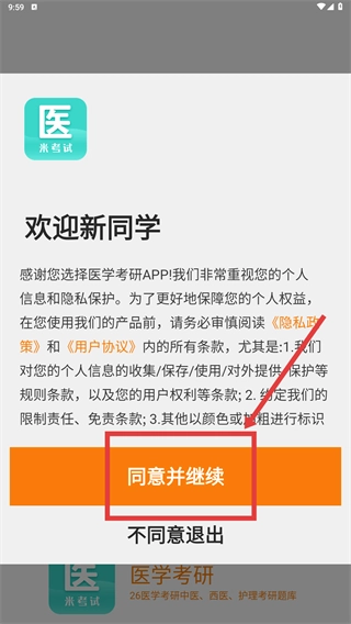 1、仔细阅读《隐私政策》和《用户协议》后,点击【同意并继续】按钮,即表示您确认并同意相关协议,随后可进入应用。