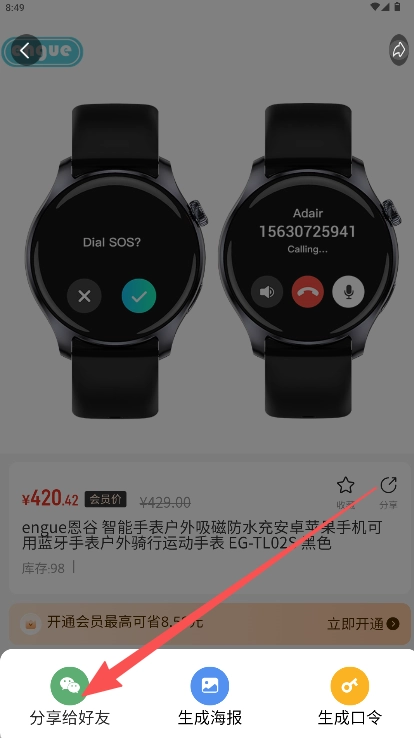 3、出现分享弹窗界面,就可以将商品链接分享好友。