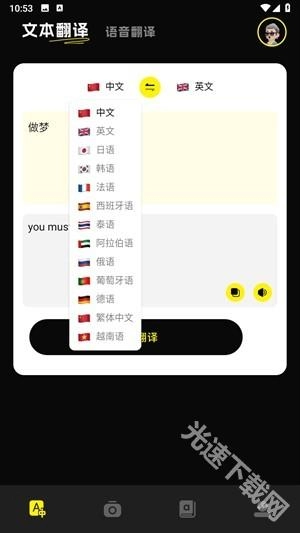 进入软件后,首先映入眼帘的是翻译板块,该板块支持多种翻译方式。