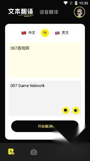 1、打开软件后直接进入首页的翻译功能界面,在上方的输入框中填入需要翻译的文字,然后点击“开始翻译”按钮即可。