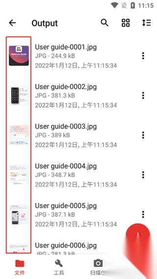 5、在文件功能板块里,我们能够查看所有已转换完成的JPG文件。