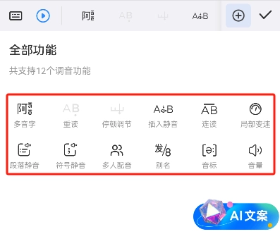 360度全方位整合文字转语音、数字读法、语句韵律、节奏、语速等功能,搭配丰富易用的编辑工具,助力用户打造高品质配音作品。