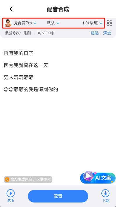 5、文字转语音:能够随时完成文字与语音之间的转换,轻松合成出自然流畅的语音内容。