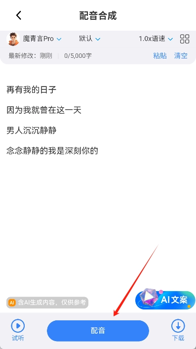 6、完成后点击“配音”按钮,配音完成后可以下来分享到其他平台。