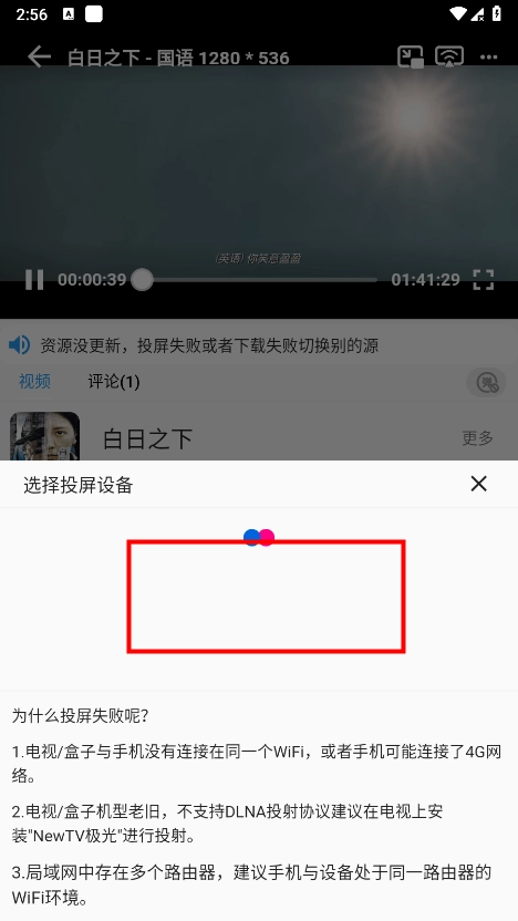 4、请注意,必须保证手机端与电视端连接在同一个WiFi网络环境下,不然将无法搜索到相关结果。