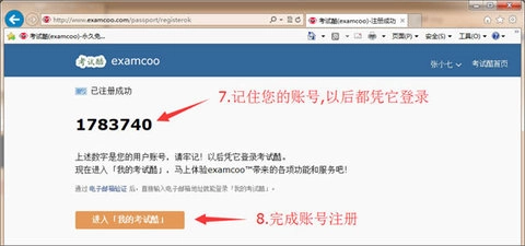 8、点击“进入「我的考试酷」”按钮,至此,账号的注册工作便全部完成了。