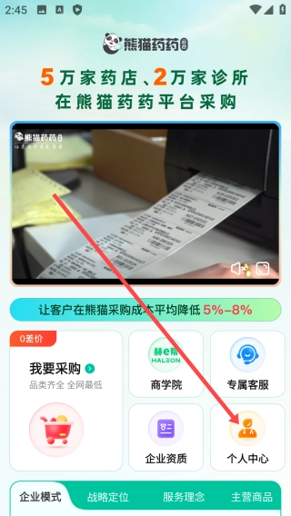 1、打开熊猫药药,点击【个人中心】