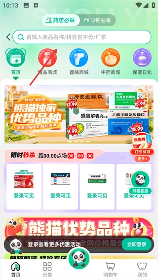 1、进入熊猫药药首页,点击【我要采购】选项。