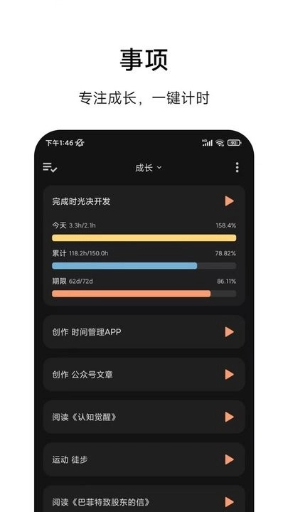 提供了线上事项记录功能,便于用户在线专注计时。