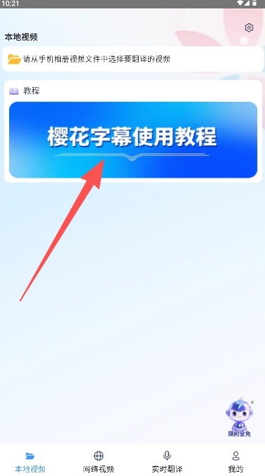 1、在首页点击”樱花字幕使用教程“进入下一步。