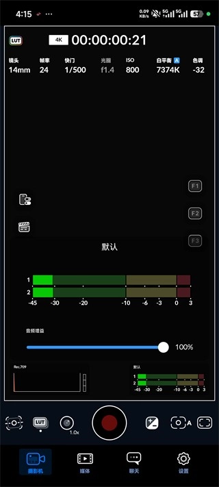 1、启动Blackmagic Camera后,你会注意到默认界面是横屏显示的状态,这时需要先进入设置菜单来进行相关调整。