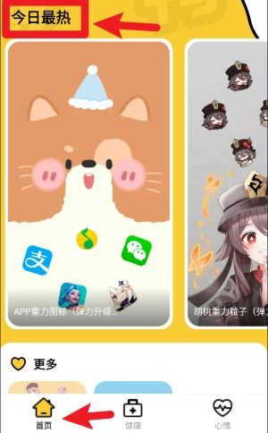 1、点击“今日最热”板块,浏览当下最受大家喜爱的图标推荐,直接挑选就能迅速切换桌面风格。