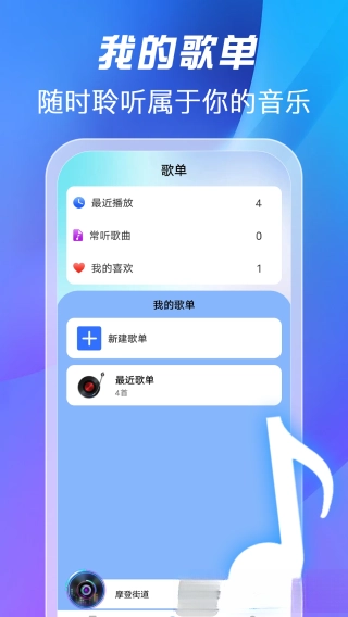 5.查看歌单界面,轻松管理最近播放和喜欢的歌曲。