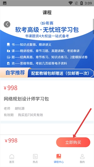 4、进入课程详情页面后,点击【立即购买】按钮,即可完成报名流程。